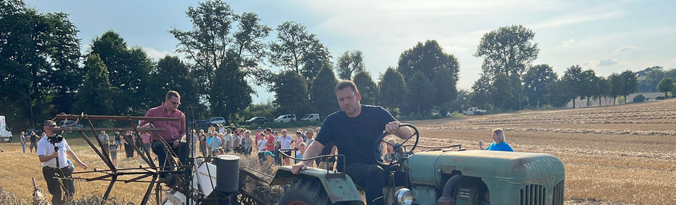 Ein kleinen Vorgeschmack aufs bevorstehende Oldtimer- & Traktorentreffen bekam man bei der historischen Getreideernte hinter der Welse. Konstantin Birr und Henry Finger holten auf alt ehrwürdige Weise das Getreide vom Feld, welches für den Dreschkasten zum Schaudreschen benötigt wird. Im Anschluss gab eine Stärkung mit Schmalzstulle und einem erfrischenden Getränk.